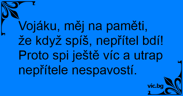 Vojáku, měj na paměti, že když spíš, nepřítel bdí! Proto spi ještě víc a utrap nepřítele nespavostí.