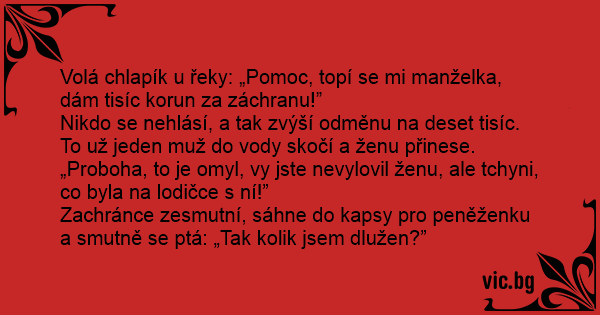 Zachránce zesmutní, sáhne do kapsy pro peněženku a smutně se ptá: „Tak kolik jsem dlužen?”