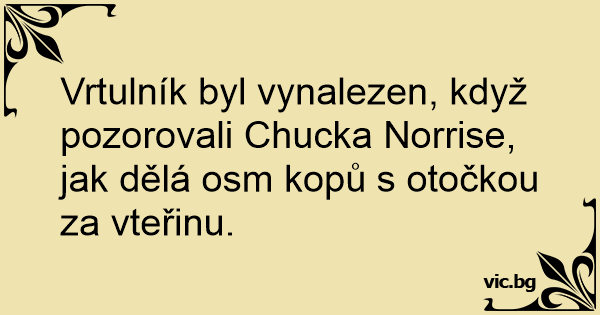 Vrtulník byl vynalezen, když pozorovali Chucka Norrise, jak dělá osm kopů s otočkou za vteřinu.