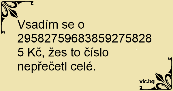 Vsadím se o 295827596838592758285 Kč, žes to číslo nepřečetl celé.