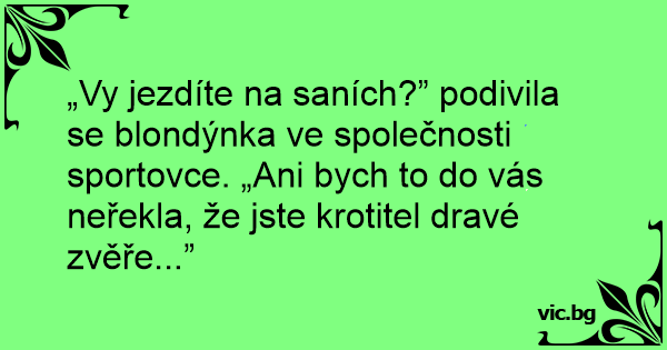 „Vy jezdíte na saních?” podivila se blondýnka ve společnosti sportovce. „Ani bych to do vás neřekla, že jste krotitel dravé zvěře...”
