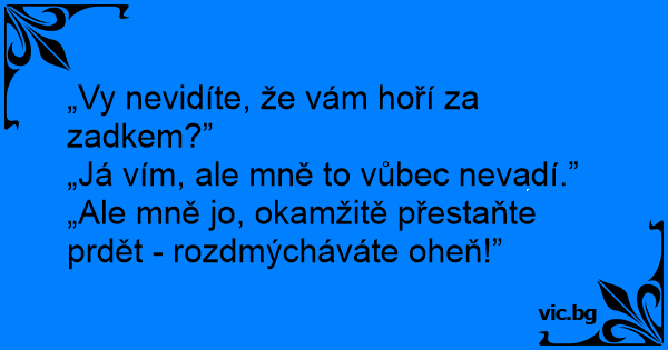 „Ale mně jo, okamžitě přestaňte prdět - rozdmýcháváte oheň!”