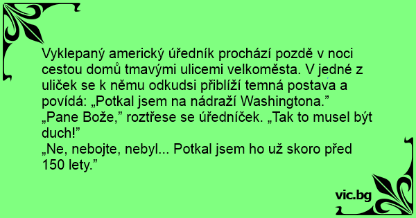 „Pane Bože,” roztřese se úředníček. „Tak to musel být duch!”