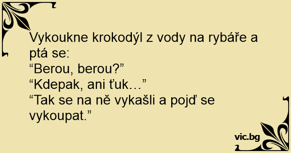 Vykoukne krokodýl z vody na rybáře a ptá se: