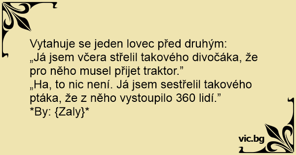„Já jsem včera střelil takového divočáka, že pro něho musel přijet traktor.”