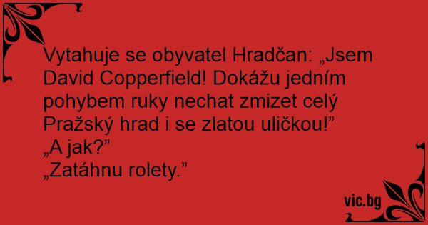 Vytahuje se obyvatel Hradčan: „Jsem David Copperfield! Dokážu jedním pohybem ruky nechat zmizet celý Pražský hrad i se zlatou uličkou!”