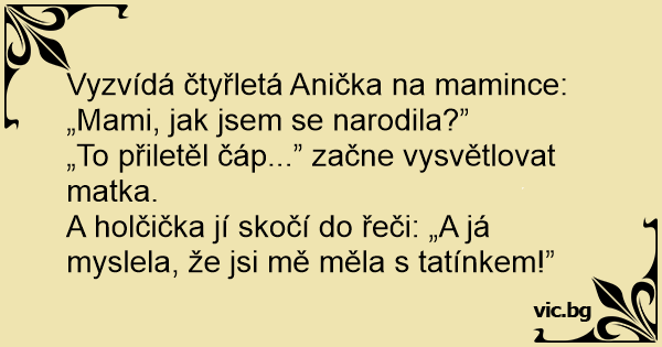 A holčička jí skočí do řeči: „A já myslela, že jsi mě měla s tatínkem!”