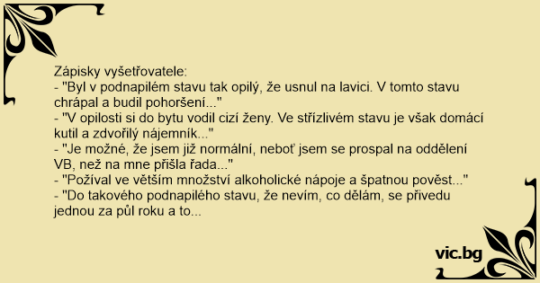 - "Byl v podnapilém stavu tak opilý, že usnul na lavici. V tomto stavu chrápal a budil pohoršení..."