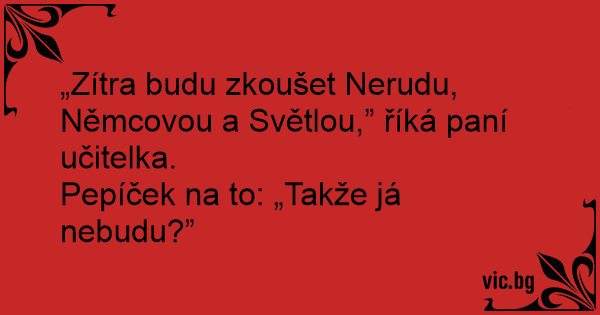 „Zítra budu zkoušet Nerudu, Němcovou a Světlou,” říká paní učitelka.