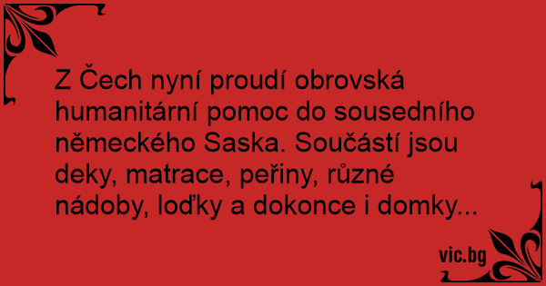 Z Čech nyní proudí obrovská humanitární pomoc do sousedního německého Saska. Součástí jsou deky, matrace, peřiny, různé nádoby, loďky a dokonce i domky...