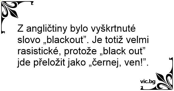 Z angličtiny bylo vyškrtnuté slovo „blackout”. Je totiž velmi rasistické, protože „black out” jde přeložit jako „černej, ven!”.