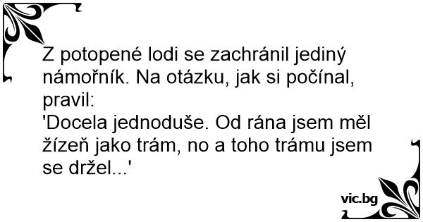 Z potopené lodi se zachránil jediný námořník. Na otázku, jak si počínal, pravil: