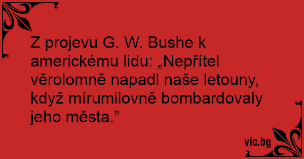 Z projevu G. W. Bushe k americkému lidu: „Nepřítel věrolomně napadl naše letouny, když mírumilovně bombardovaly jeho města.”