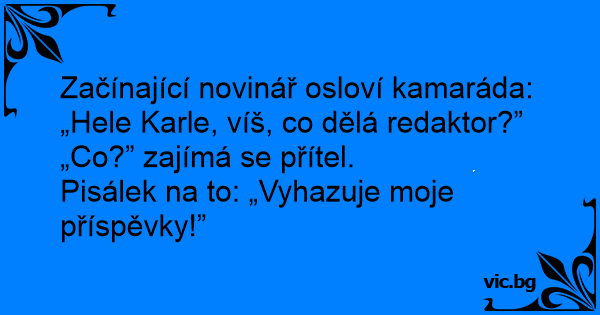 Začínající novinář osloví kamaráda: „Hele Karle, víš, co dělá redaktor?”