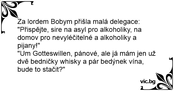 "Přispějte, sire na asyl pro alkoholiky, na domov pro nevyléčitelné a alkoholiky a pijany!"