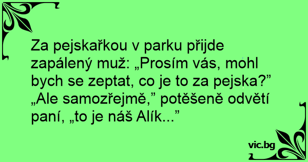 Za pejskařkou v parku přijde zapálený muž: „Prosím vás, mohl bych se zeptat, co je to za pejska?”