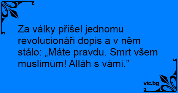 Za války přišel jednomu revolucionáři dopis a v něm stálo: „Máte pravdu. Smrt všem muslimům! Alláh s vámi.”