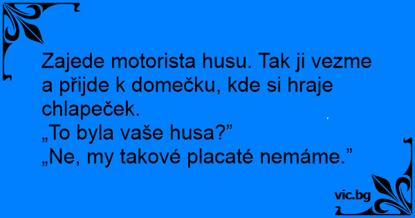 Zajede motorista husu. Tak ji vezme a přijde k domečku, kde si hraje chlapeček.