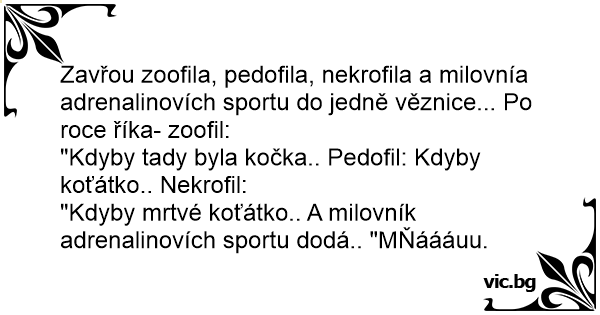"Kdyby tady byla kočka.. Pedofil: Kdyby koťátko.. Nekrofil: