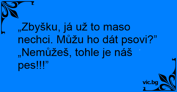 „Zbyšku, já už to maso nechci. Můžu hо dát psovi?”