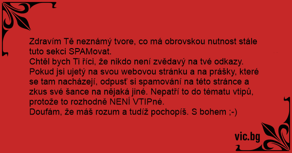 Zdravím Tě neznámý tvore, co má obrovskou nutnost stále tuto sekci SPAMovat.