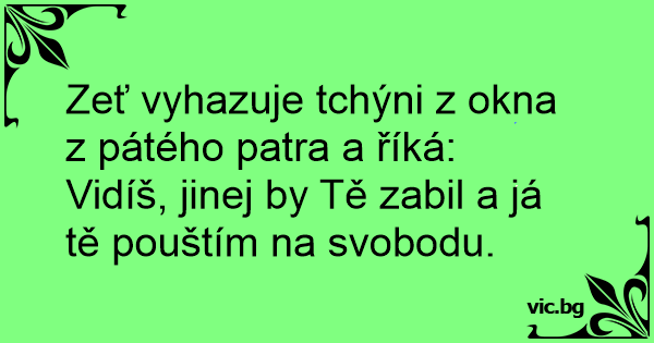 Zeť vyhazuje tchýni z okna z pátého patra a říká: