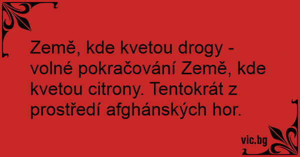 Země, kde kvetou drogy - volné pokračování Země, kde kvetou citrony. Tentokrát z prostředí afghánských hor.
