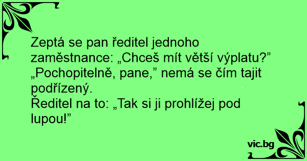Zeptá se pan ředitel jednoho zaměstnance: „Chceš mít větší výplatu?”