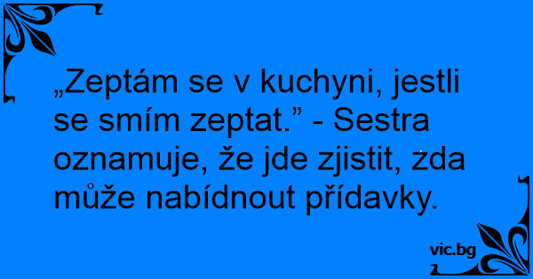 „Zeptám se v kuchyni, jestli se smím zeptat.” - Sestra oznamuje, že jde zjistit, zda může nabídnout přídavky.