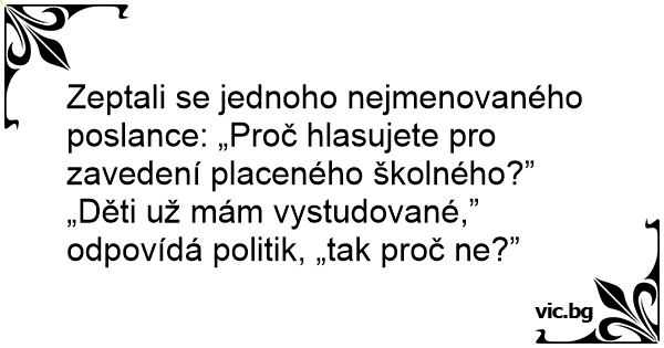 Zeptali se jednoho nejmenovaného poslance: „Proč hlasujete pro zavedení placeného školného?”