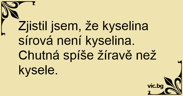 Zjistil jsem, že kyselina sírová není kyselina. Chutná spíše žíravě než kysele.