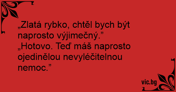 „Zlatá rybko, chtěl bych být naprosto výjimečný.”