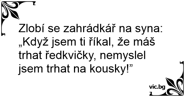 Zlobí se zahrádkář na syna: „Když jsem ti říkal, že máš trhat ředkvičky, nemyslel jsem trhat na kousky!”