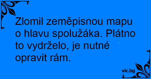 Zlomil zeměpisnou mapu o hlavu spolužáka. Plátno to vydrželo, je nutné opravit rám.