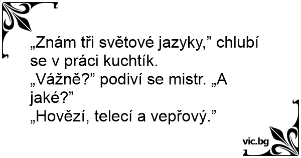 „Znám tři světové jazyky,” chlubí se v práci kuchtík.