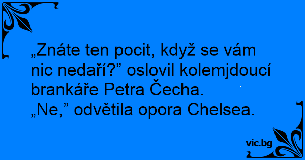 „Znáte ten pocit, když se vám nic nedaří?” oslovil kolemjdoucí brankáře Petra Čecha.