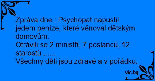 Zpráva dne : Psychopat napustil jedem peníze, které věnoval dětským domovům.