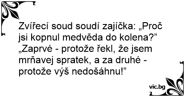 Zvířecí soud soudí zajíčka: „Proč jsi kopnul medvěda do kolena?”