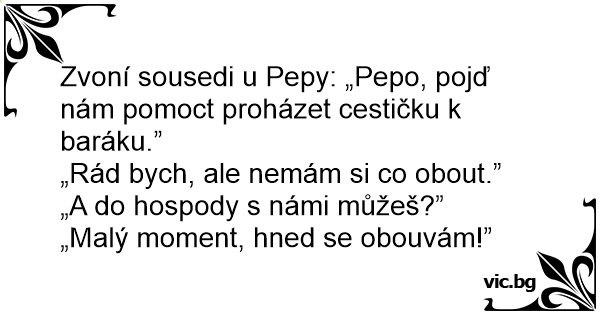 Zvoní sousedi u Pepy: „Pepo, pojď nám pomoct proházet cestičku k baráku.”