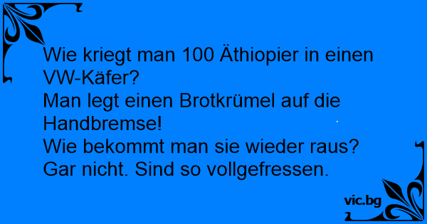 Wie kriegt man 100 Äthiopier in einen VW-Käfer?