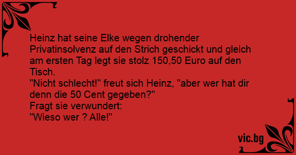 Heinz hat seine Elke wegen drohender Privatinsolvenz auf den Strich geschickt und gleich am ersten Tag legt sie stolz 150,50 Euro auf den Tisch.