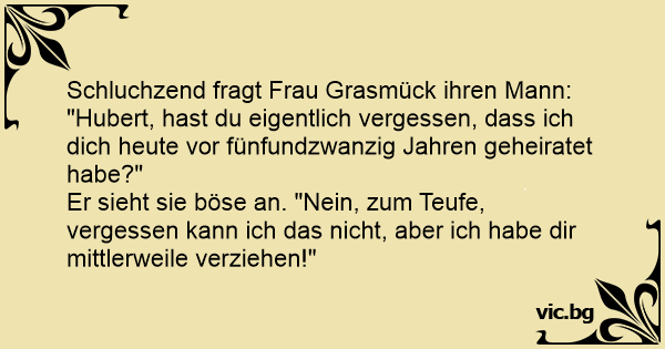 "Hubert, hast du eigentlich vergessen, dass ich dich heute vor fünfundzwanzig Jahren geheiratet habe?"