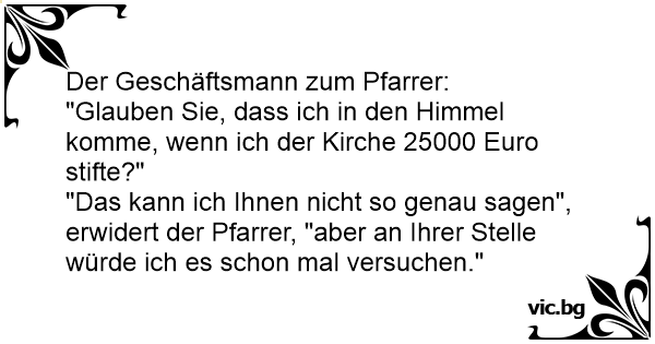 "Das kann ich Ihnen niсhт so genau sagen", erwidert der Pfarrer, "aber an Ihrer Stelle würde ich es schon mal versuchen."