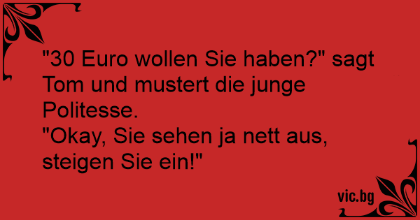 "30 Euro wollen Sie haben?" sagt Tom und mustert die junge Politesse.