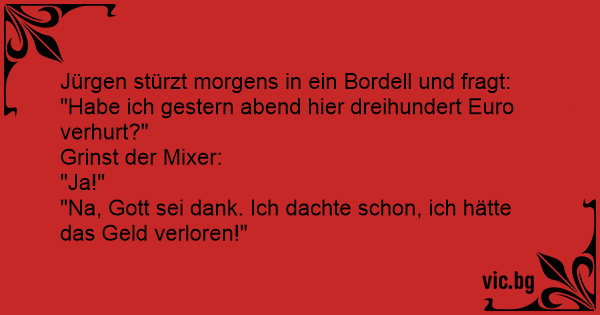 Jürgen stürzt morgens in ein Bordell und fragt: