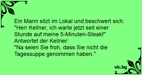 "Herr Kellner, ich warte jetzt seit einer Stunde auf meine 5-Minuten-Steak!"