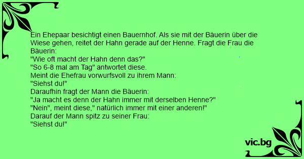 "Ja macht es denn der Hahn immer mit derselben Henne?"