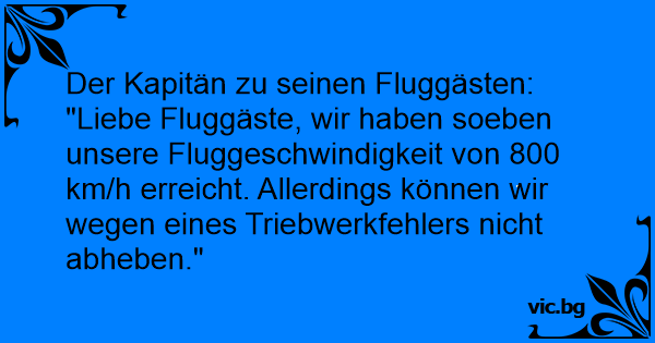 "Liebe Fluggäste, wir haben soeben unsere Fluggeschwindigkeit von 800 km/h erreicht. Allerdings können wir wegen eines Triebwerkfehlers niсhт abheben."