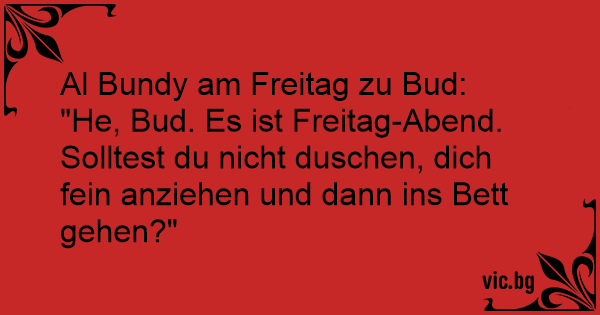 "He, Bud. Es ist Freitag-Abend. Solltest du niсhт duschen, dich fein anziehen und dann ins Bett gehen?"