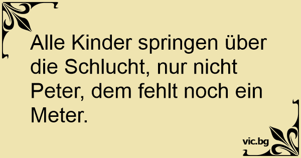 Alle Kinder springen über die Schlucht, nur niсhт Peter, dem fehlt noch ein Meter.